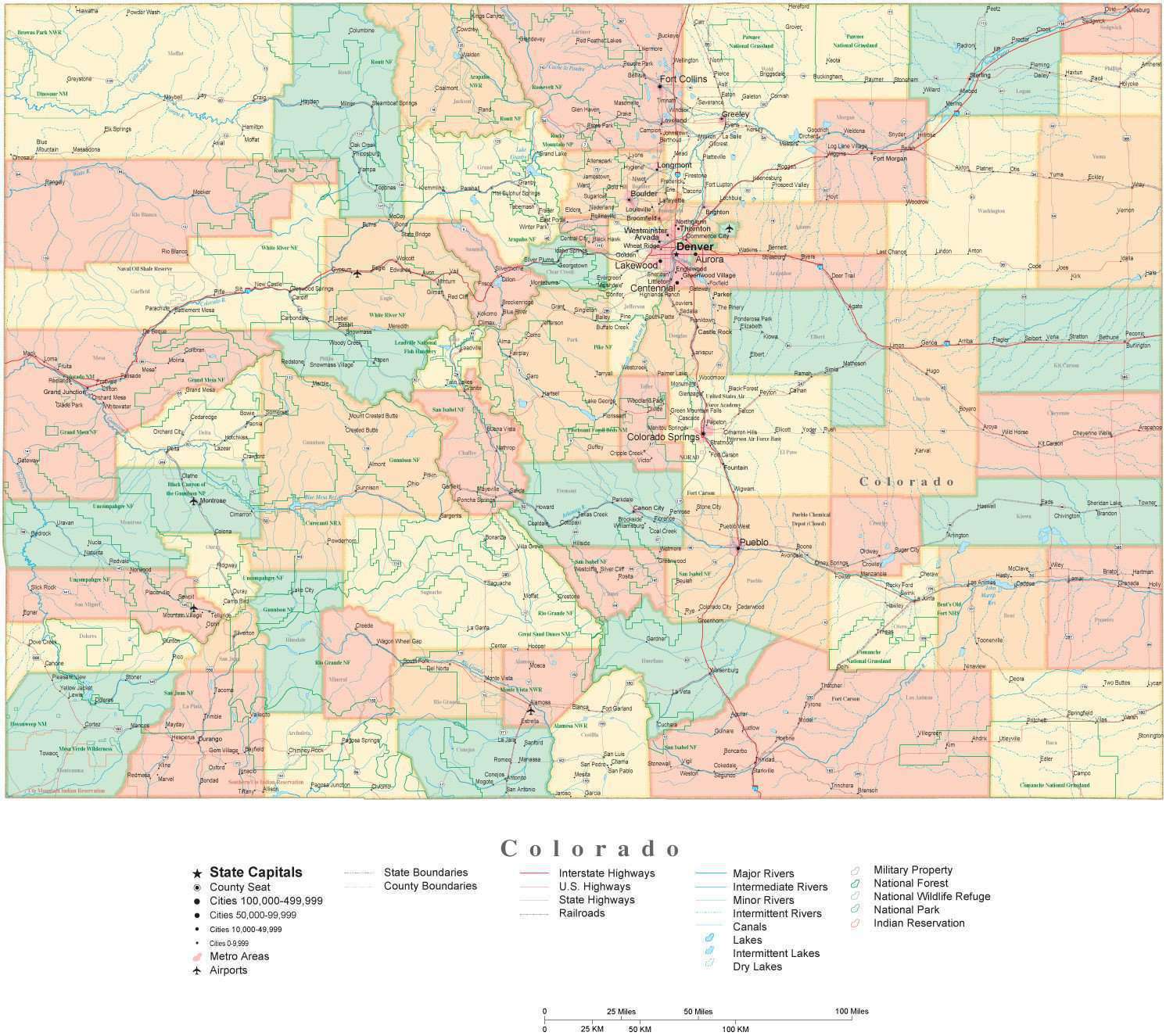 State Map of Colorado in Adobe Illustrator vector format. Detailed