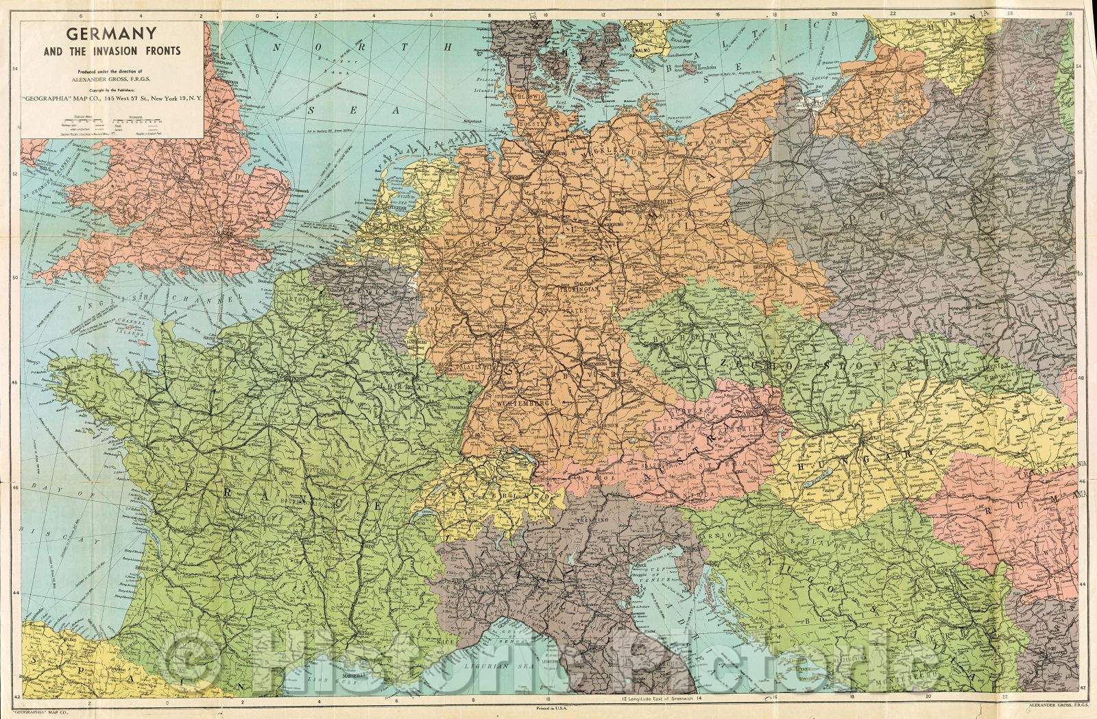 Historic Map : Germany and the invasion fronts, c. 1940 , Vintage